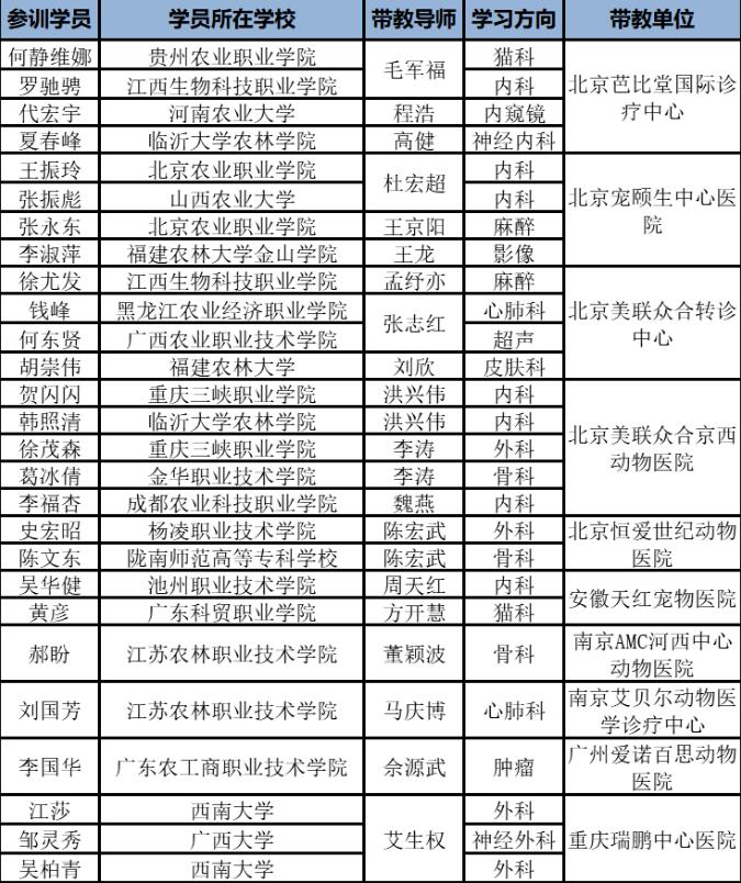 以下是本期暑假教师宠物临床技能提升特训营的参训名单