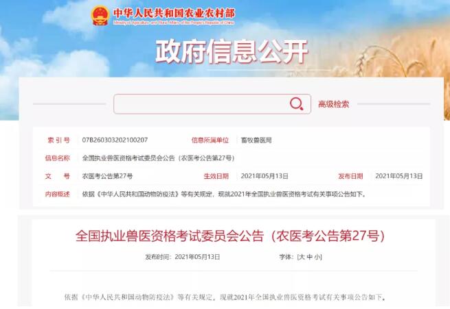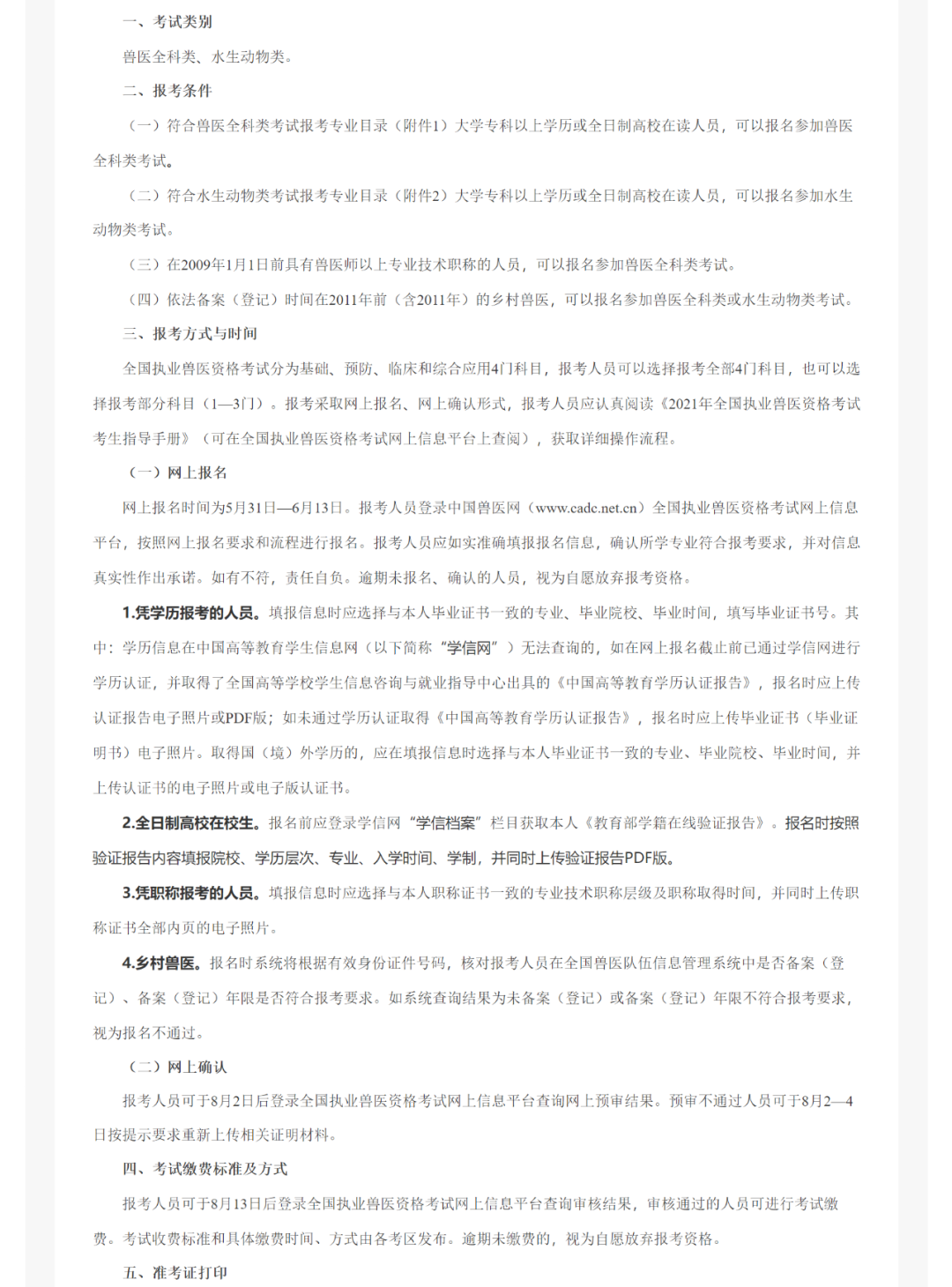 6、2021年执业兽医师报名时间是2021年5月31日-2021年6月13日!