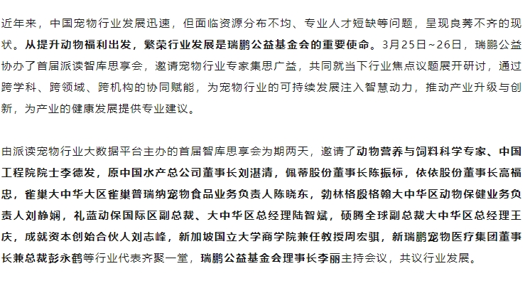 繁荣行业发展 | 智库思享会召开,促行业发展谋动物福利