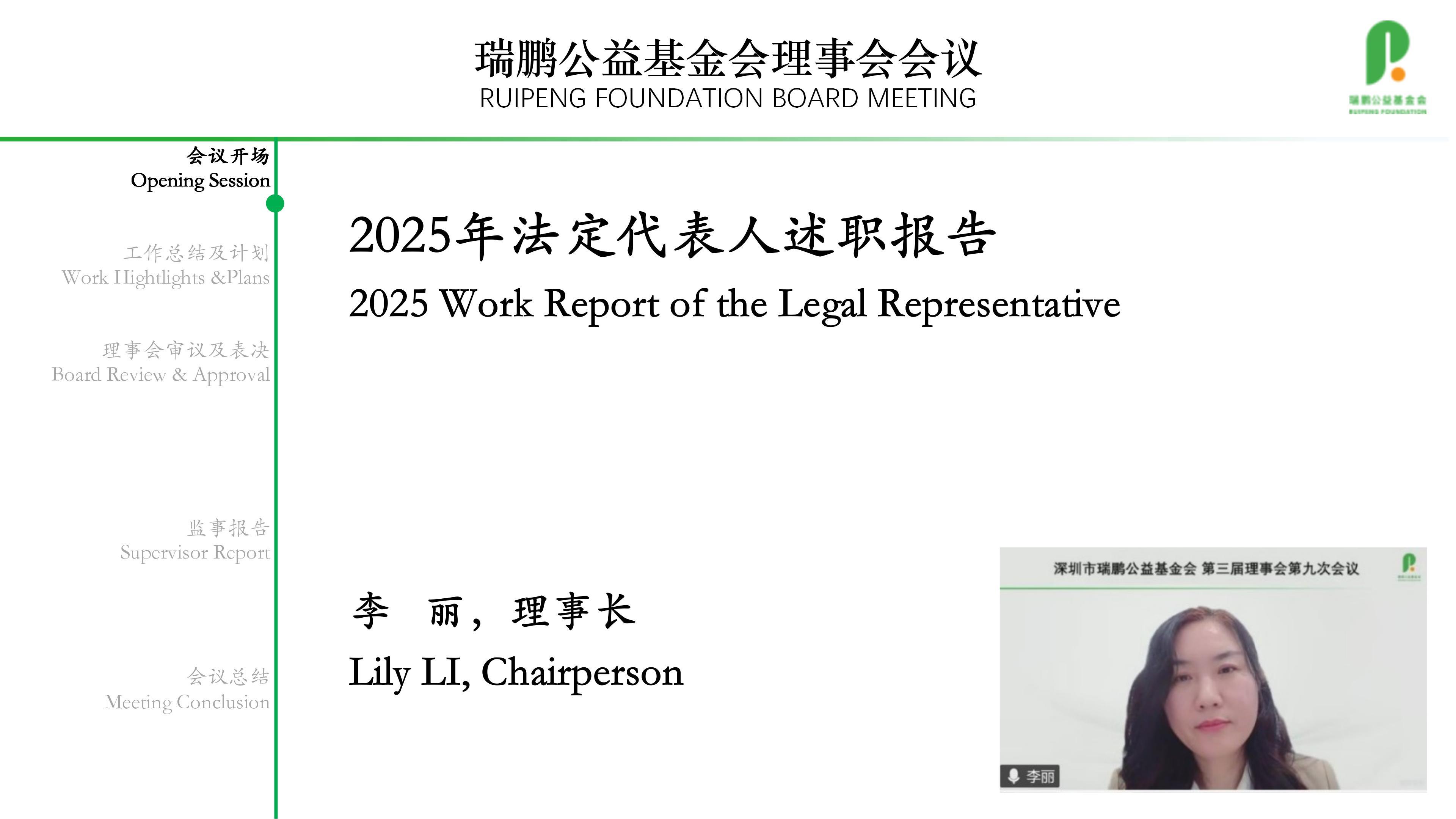 ©瑞鹏公益管理专业经理林莉做2025年工作总结及财务情况、2026年工作计划及年度预算